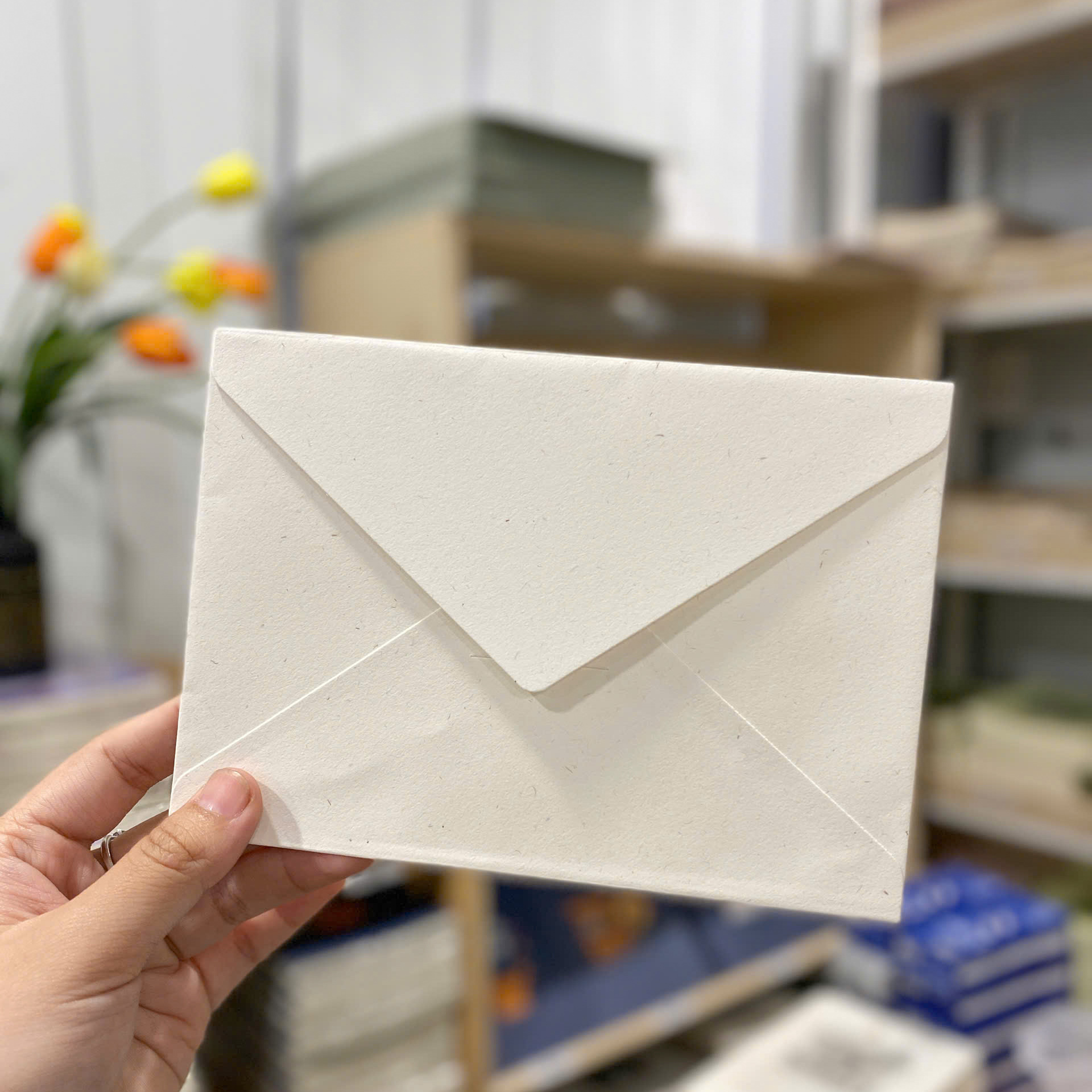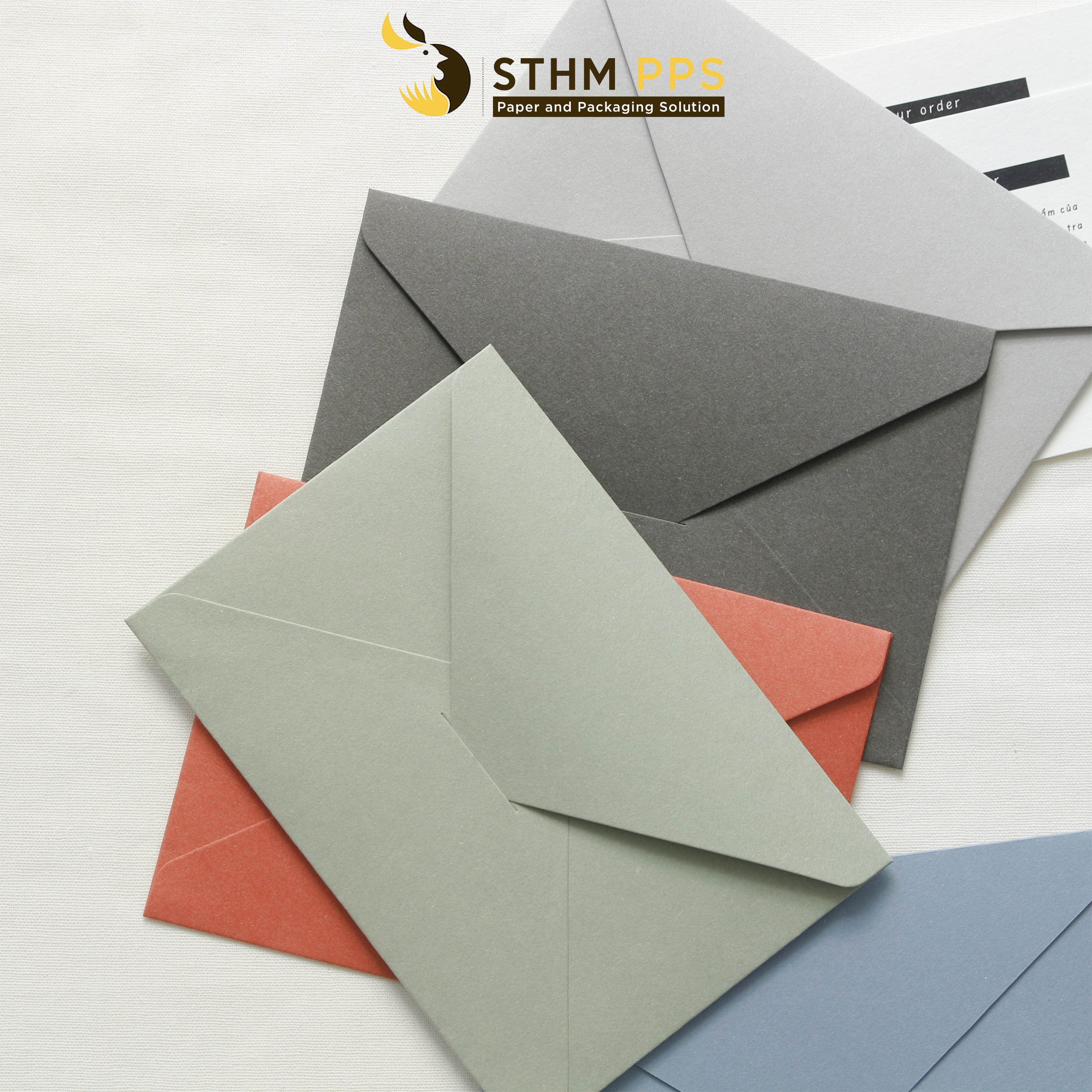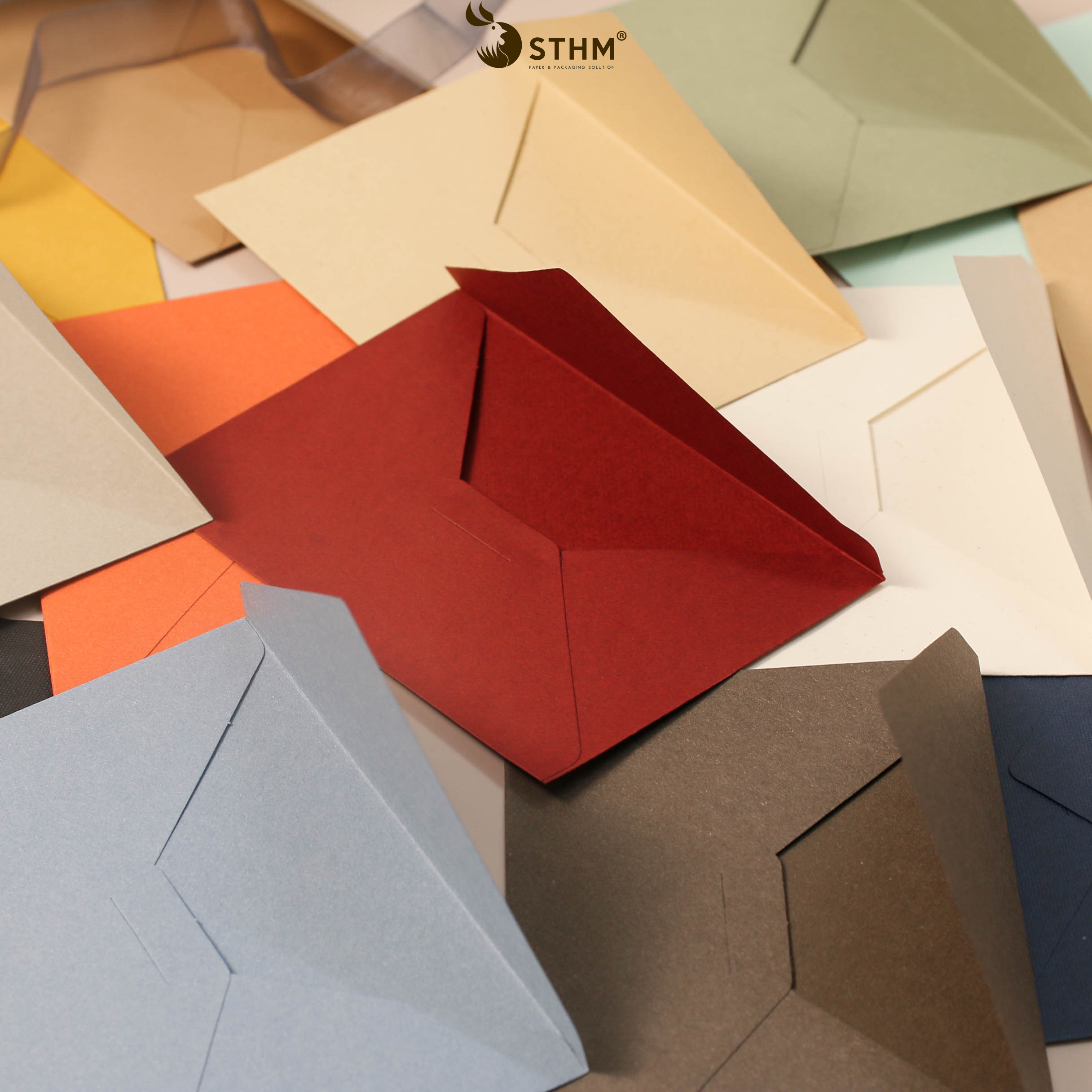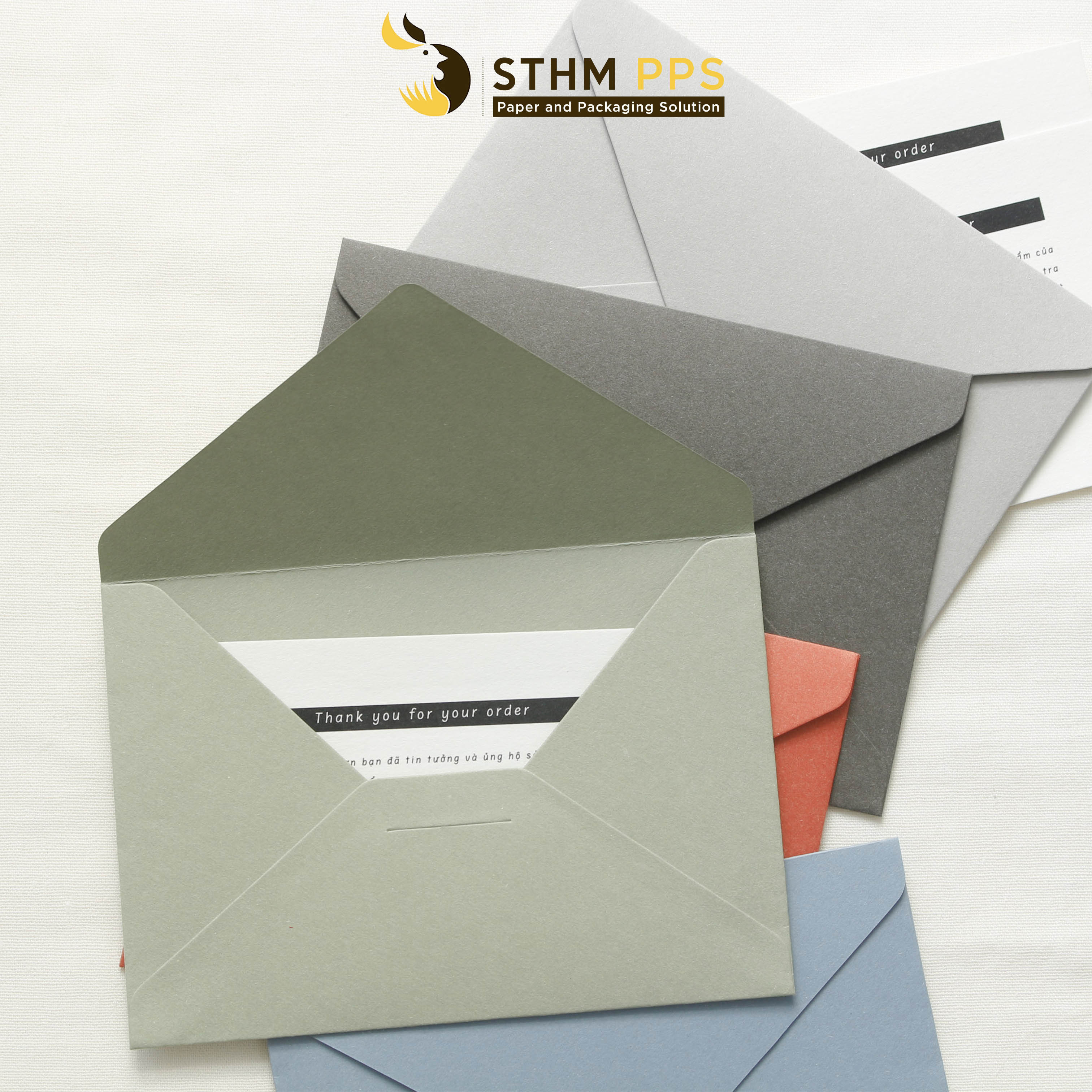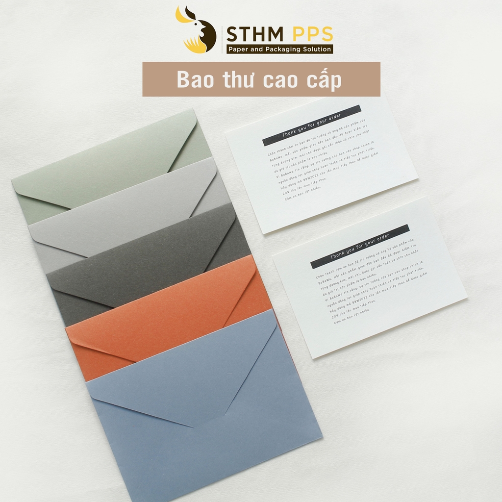 Bao thư cao cấp với chất giấy nhám và 5 màu sắc tây Matcha - Sky Blue - Orange - Coffee - Smoke. Có thể đựng vừa thư 10x14cm.
