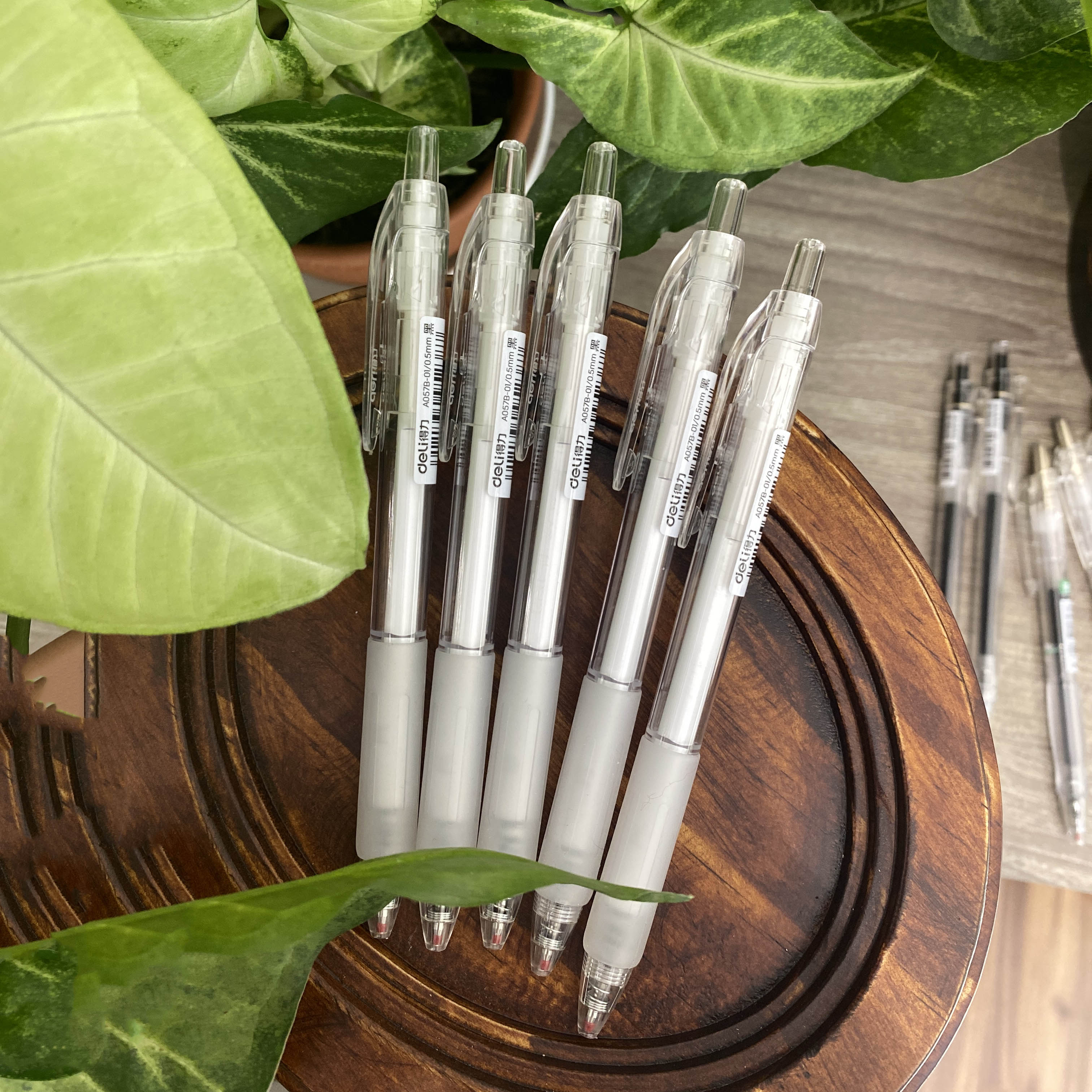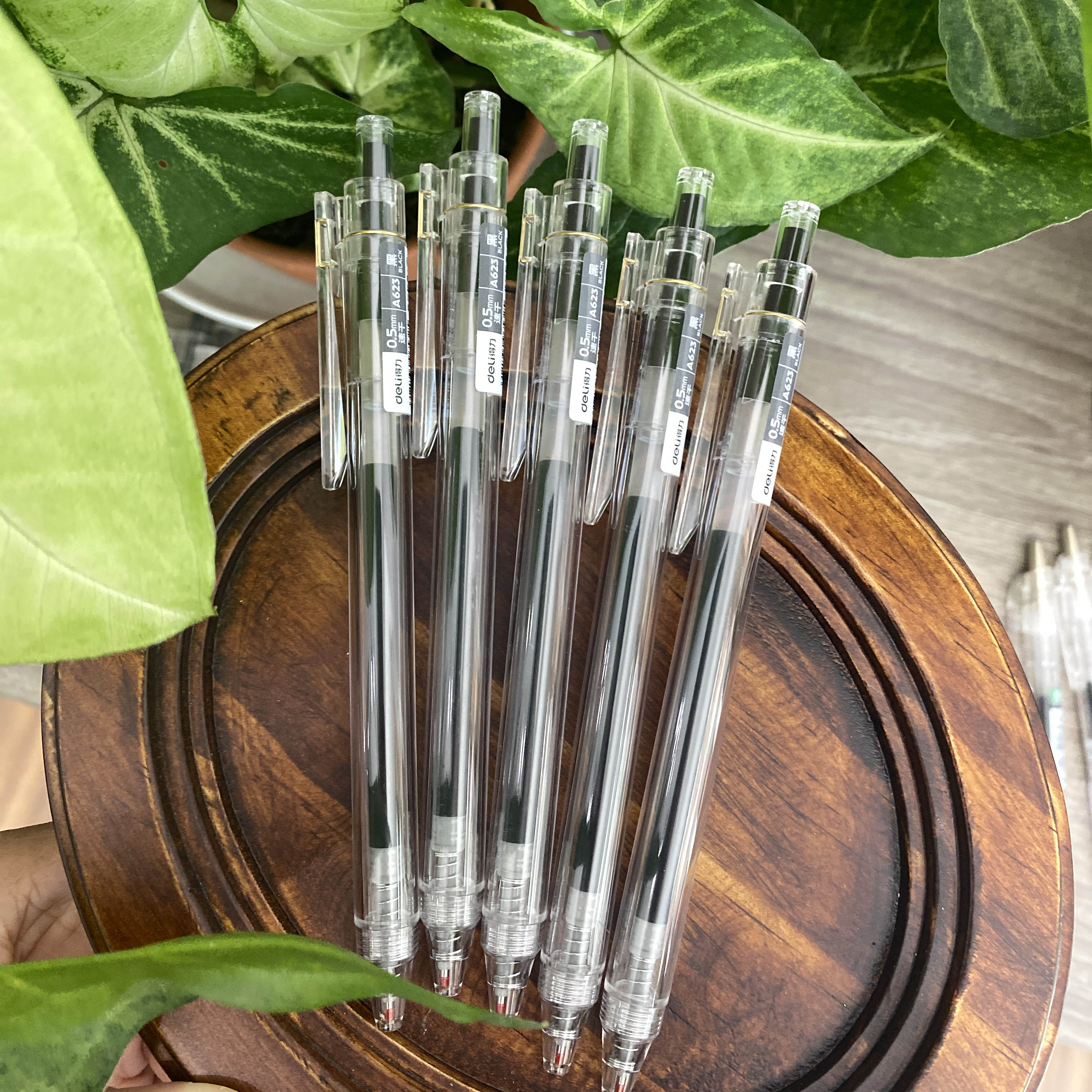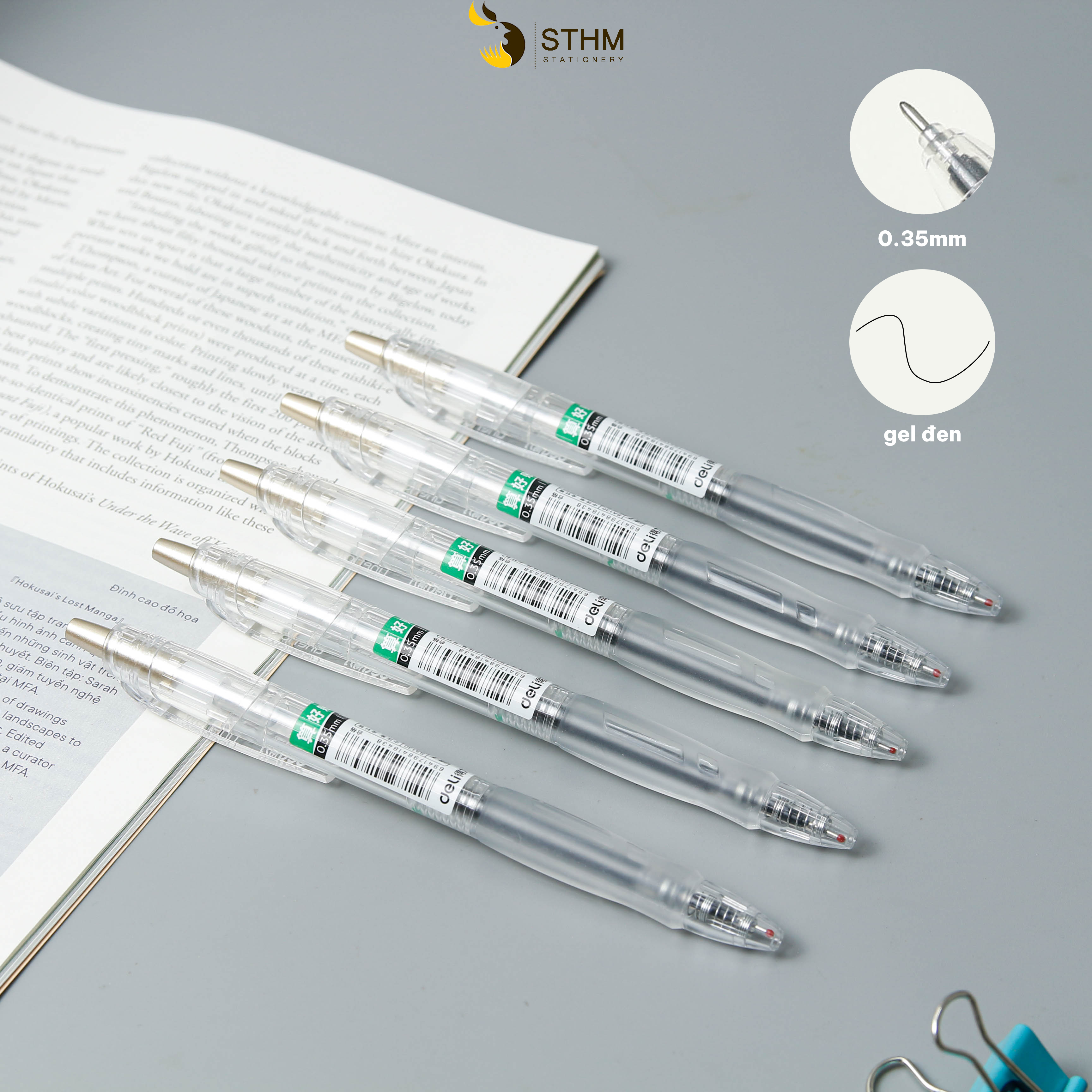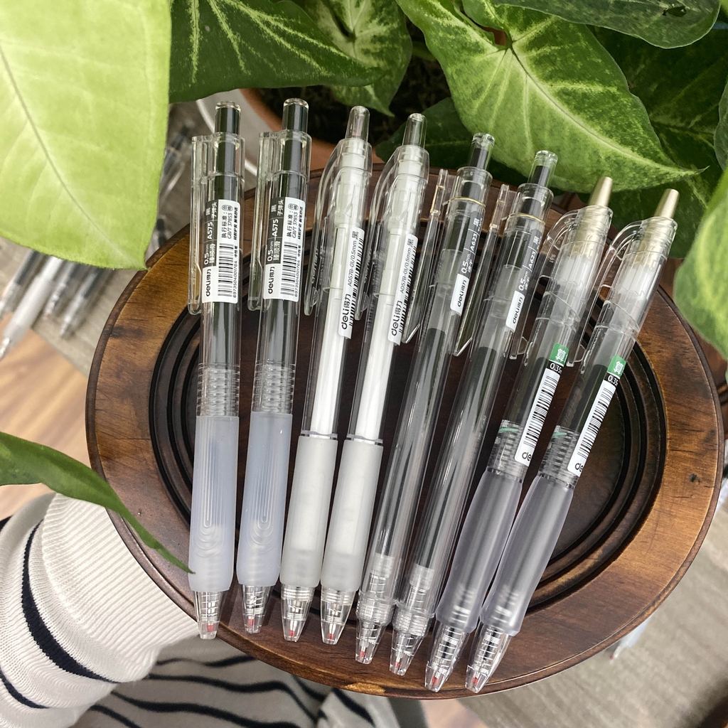 Bút Deli A130 ngòi 0.35mm, mực siêu nhanh khô, phù hợp cho việc viết lên giấy có gia keo chống thấm sang mặt sau.