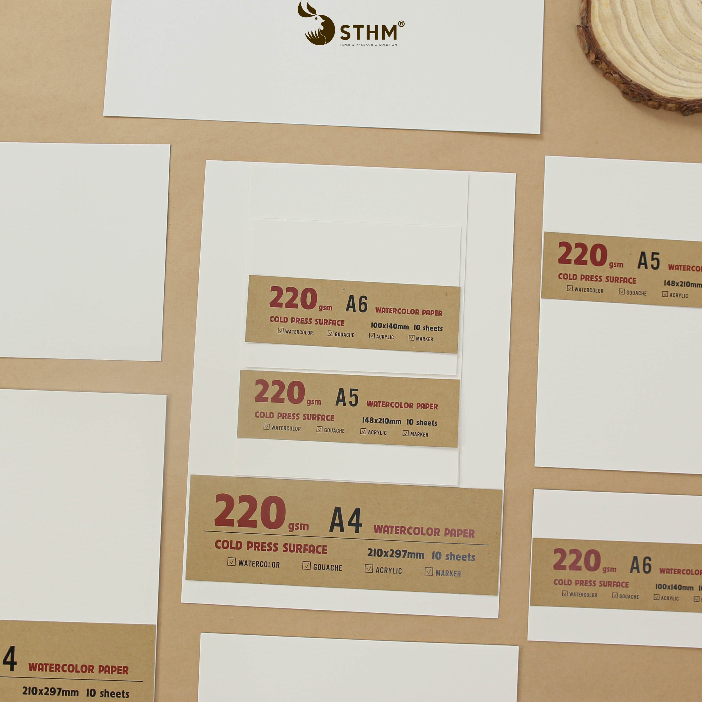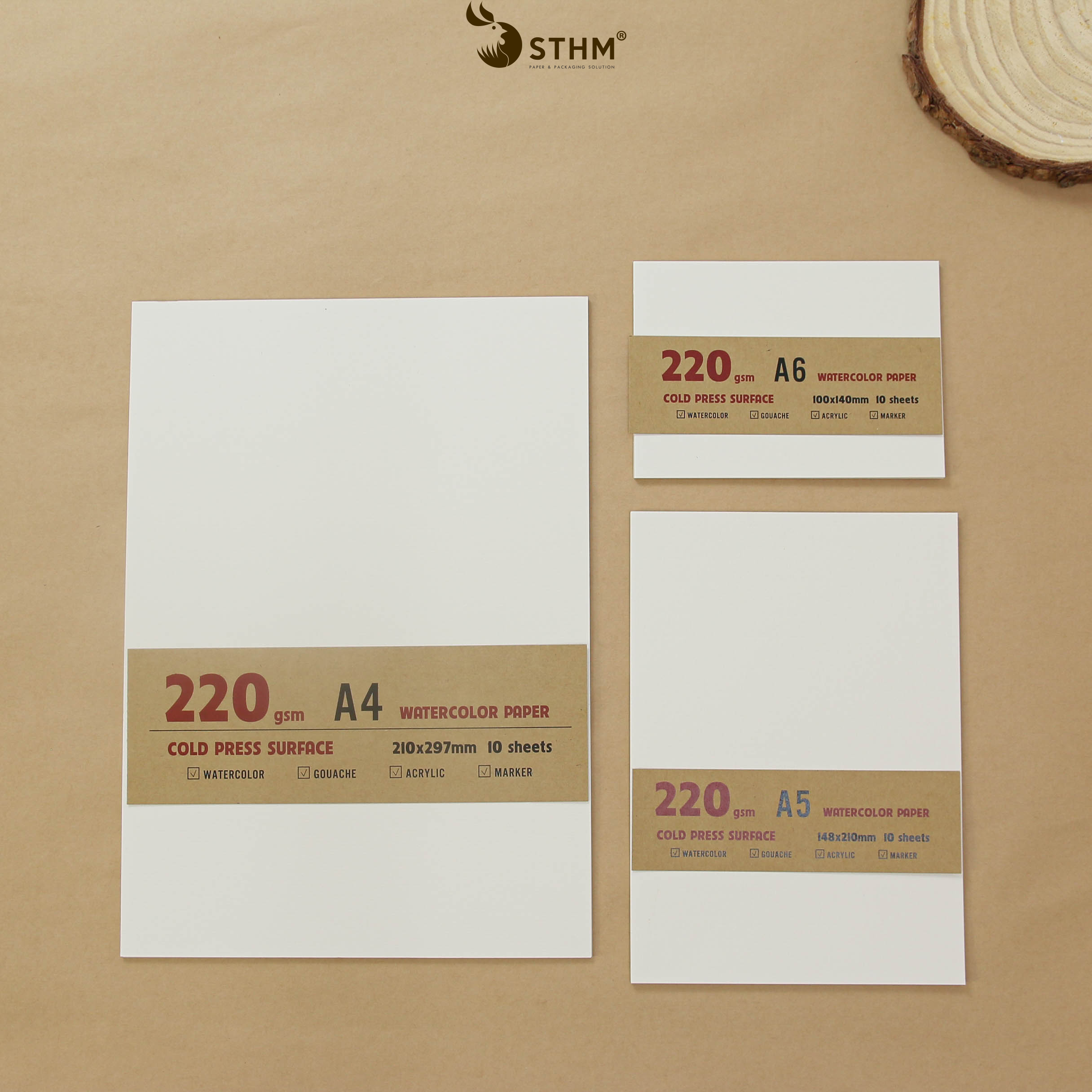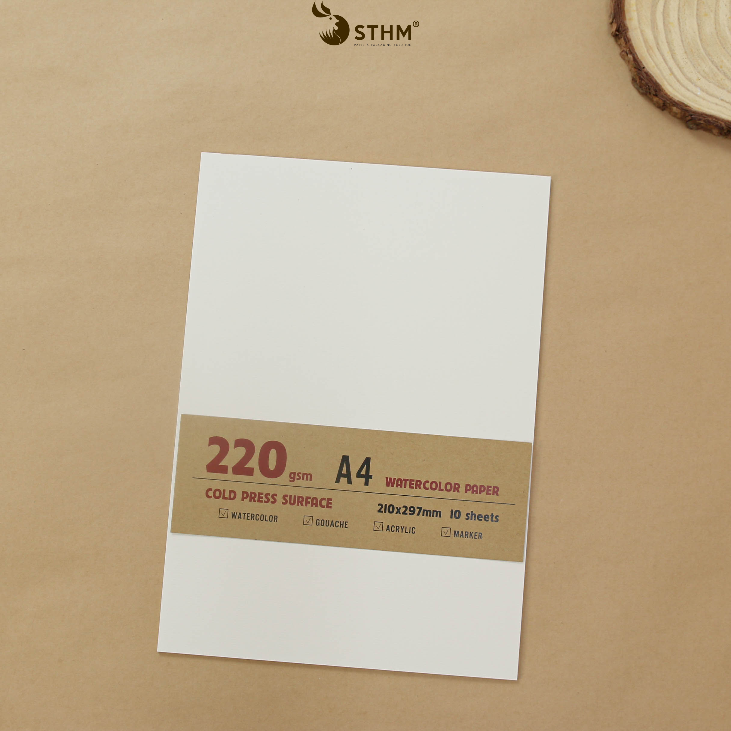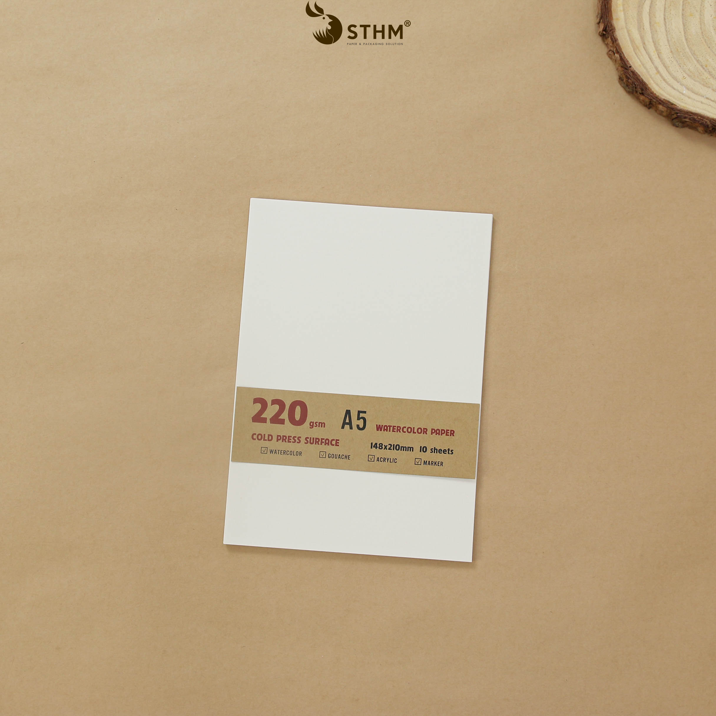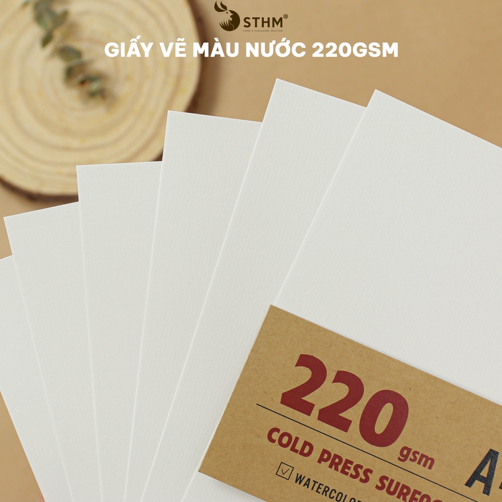 Giấy vẽ màu nước truyền thống 220gsm vân ngang thích hợp cho các bạn tập vẽ hoặc vẽ các chất màu che phủ tốt như màu Gouache, màu acrylic, sáp dầu, ....