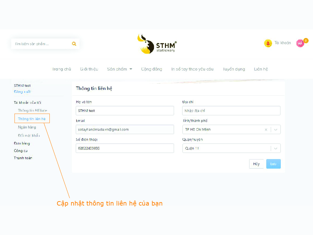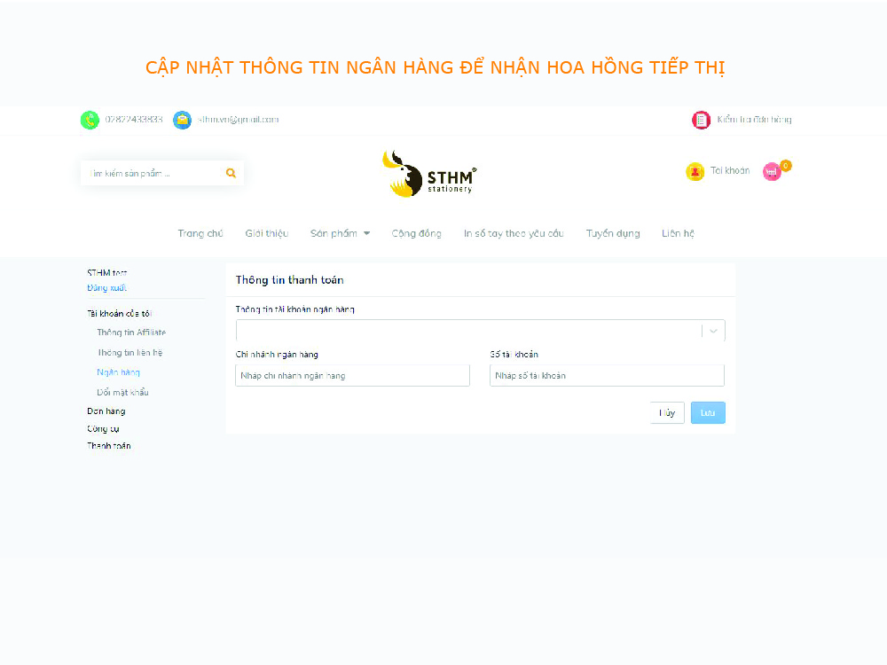 Bạn vui lòng thao tác chỉnh sửa các thông tin cá nhân, số tài khoản ngân hàng, để STHM có thể đối soát và chuyển khoản hoa hồng cho bạn vào mỗi ngày 10 hàng tháng.