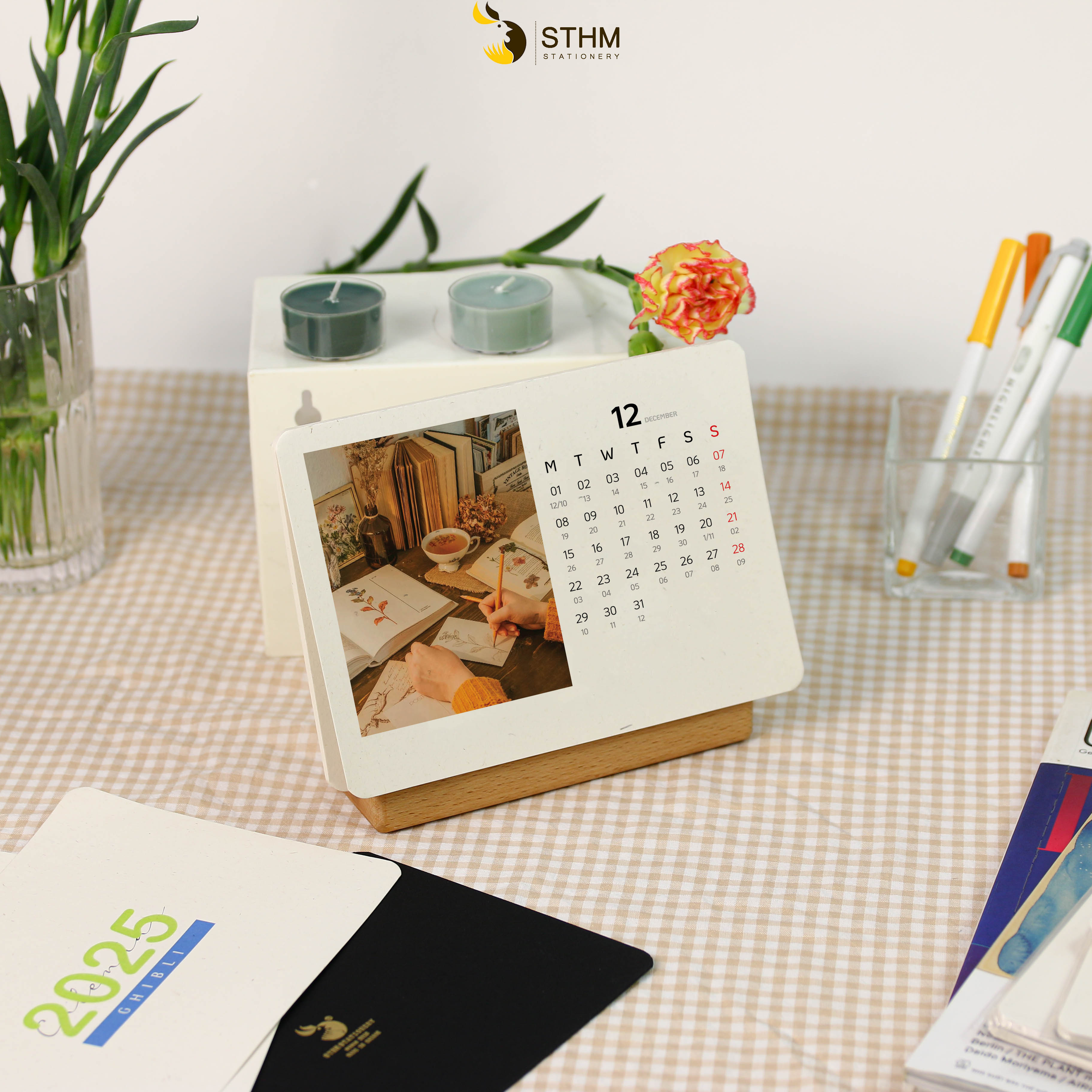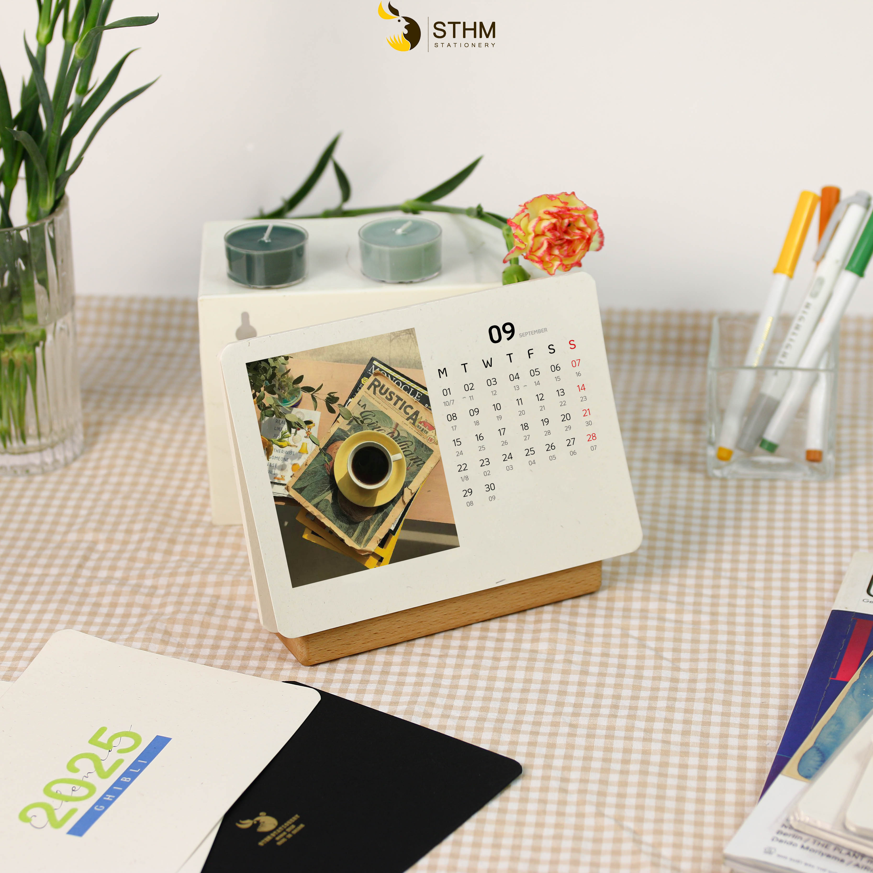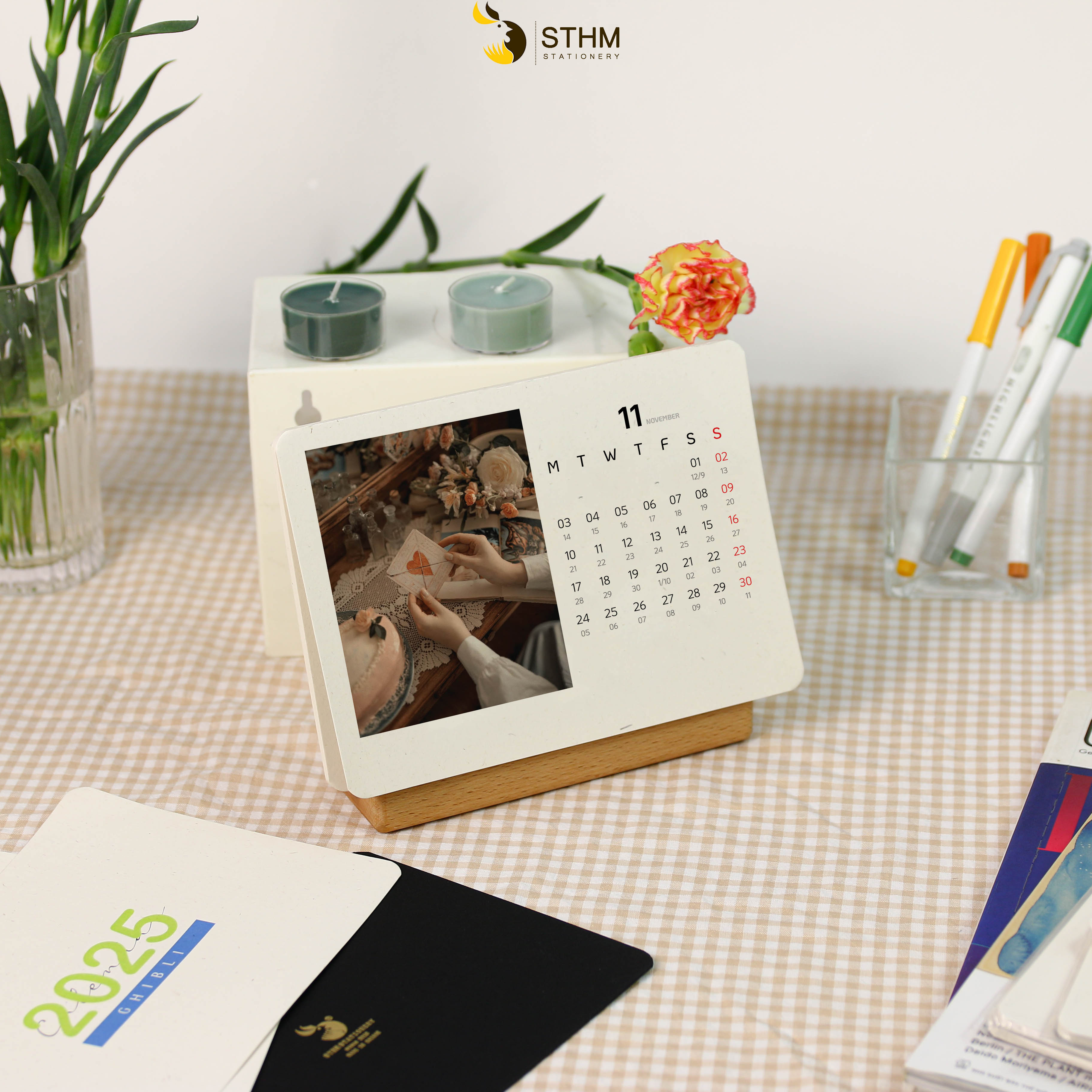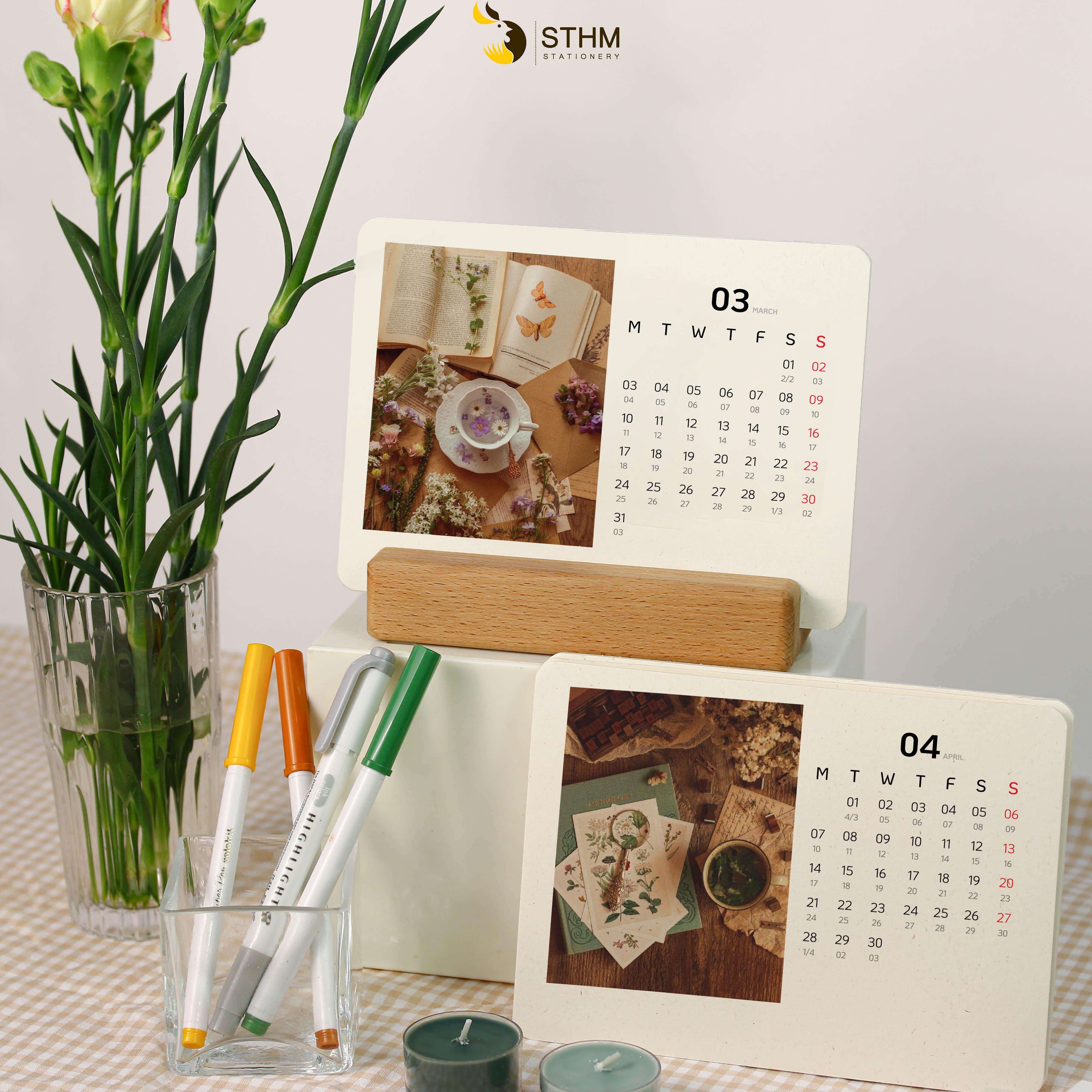 + Đế gỗ Beech - gỗ dẻ gai - một loại gỗ được nhập khẩu từ Châu Âu, có độ bền cao hơn gỗ thông, nặng hơn so với một đế gỗ thông cùng kích thước, vì vậy sẽ giúp lịch được nâng đỡ chắc chắn hơn. Ngoài ra, đặc điểm của gỗ dẻ gai là vân nhuyễn nên từng chiếc đế gỗ làm ra sẽ có sự đồng đều hơn các vân gỗ khác. So với các năm trước, đễ gỗ dẻ gai năm 2023 được gia công kỹ lưỡng, nhất là các góc bo tròn hơn, bề mặt được phủ một lớp dầu chống nước, nên càng làm cho bề mặt gỗ láng và khó trầy xước hơn.