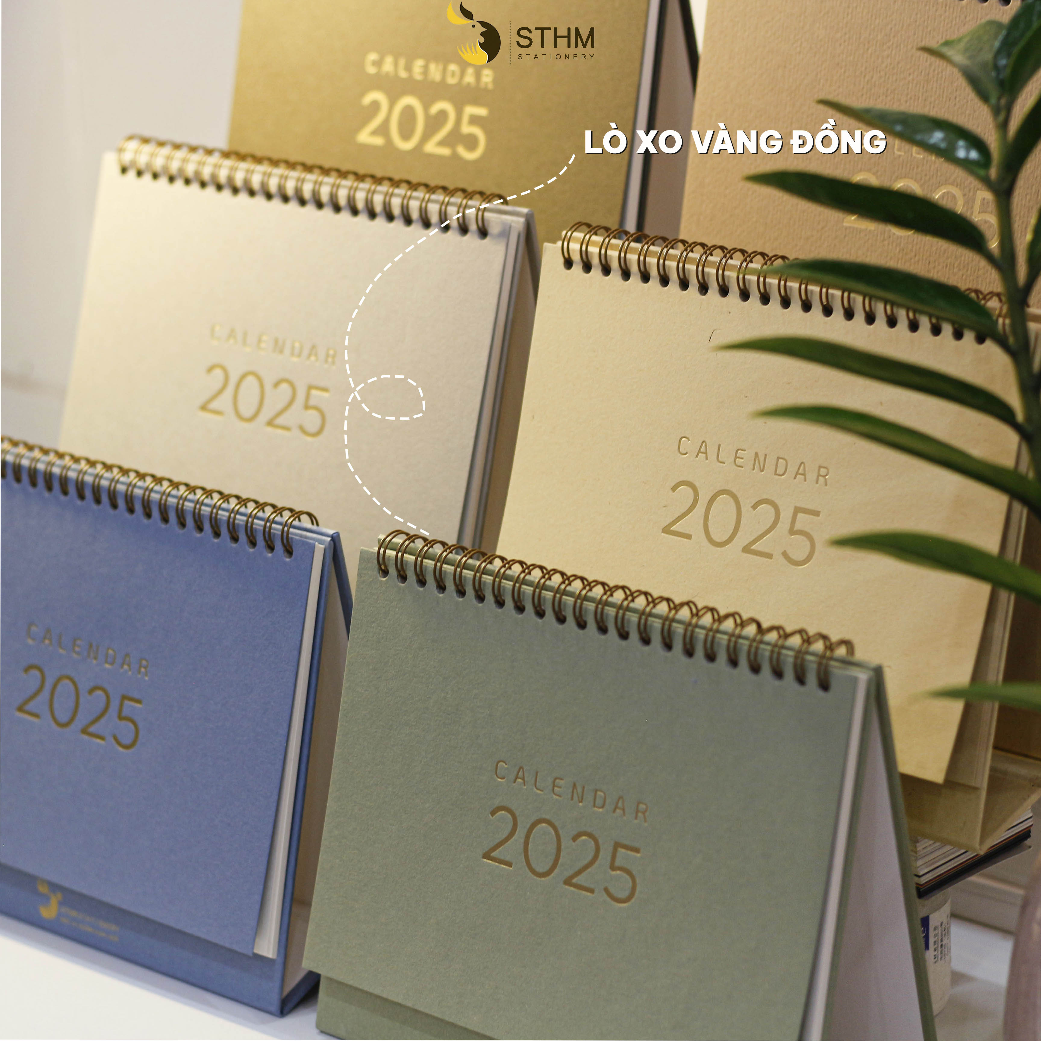 LỊCH BÀN ÉP KIM LÒ XO 2025 mang đến diện mạo khác biệt và thú vị so với các năm. Vẫn là những thiết kế tinh gọn và đẹp mắt, cùng với tờ bìa của ruột lịch được chọn là giấy mỹ thuật cao cấp có vân đẹp được ép kim màu vàng đồng mờ tinh tế cùng tone với lò xo.