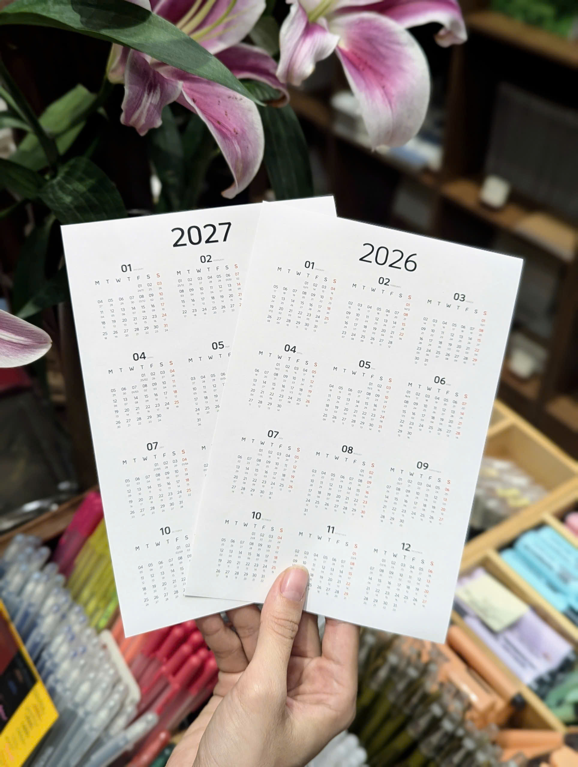 Set 1: 1 tờ lịch 12 tháng năm 2024, thiết kế có tai thỏ để phân trang; 1 tờ là tên của 12 tháng để làm tiêu đề cho cover lúc lập kế hoạch.