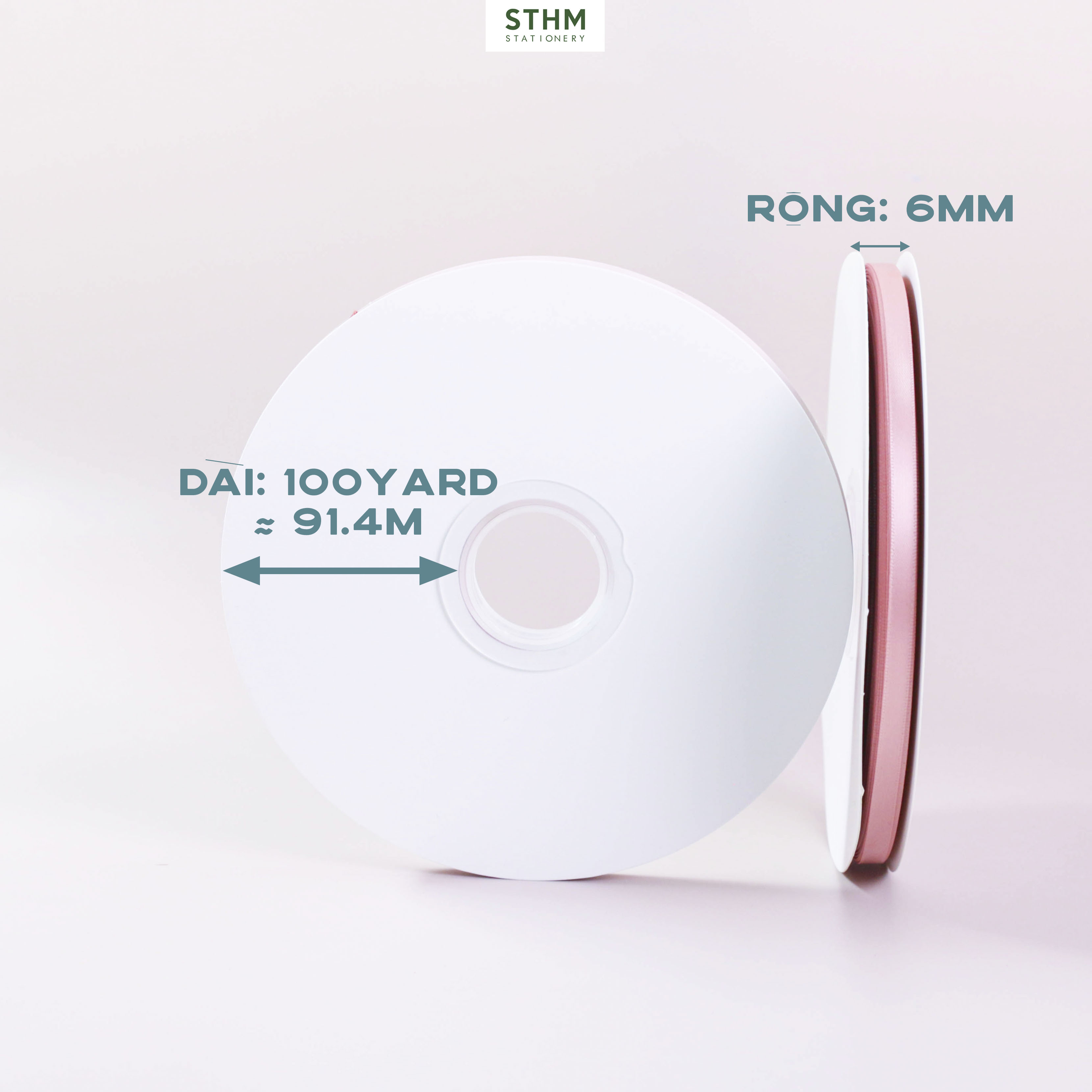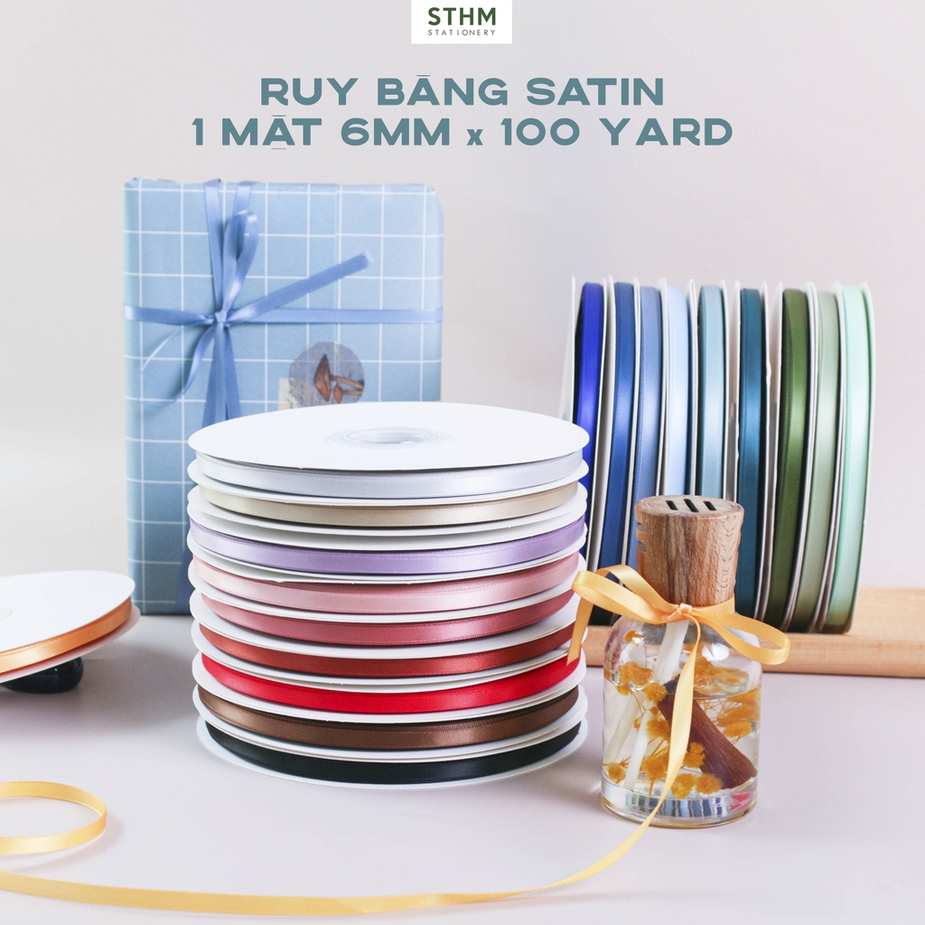 Dây ruy băng satin 1 mặt kích thước 6mm x 100 yard tương đương 91.4m.