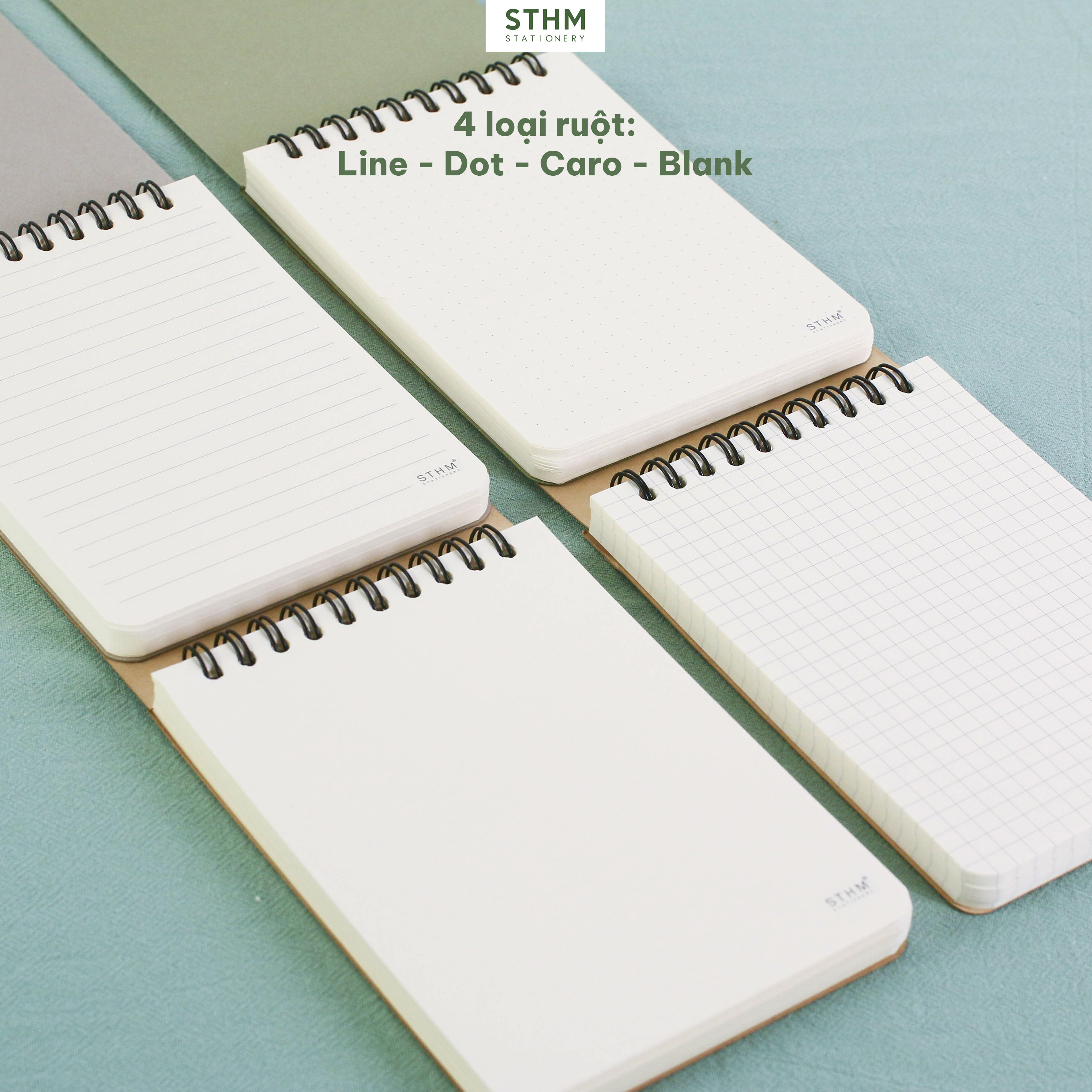 + Các loại ruột sổ: Ruled (kẻ dòng) - Dotgrid (chấm) - Squaregrid (caro) - Plain (trơn)