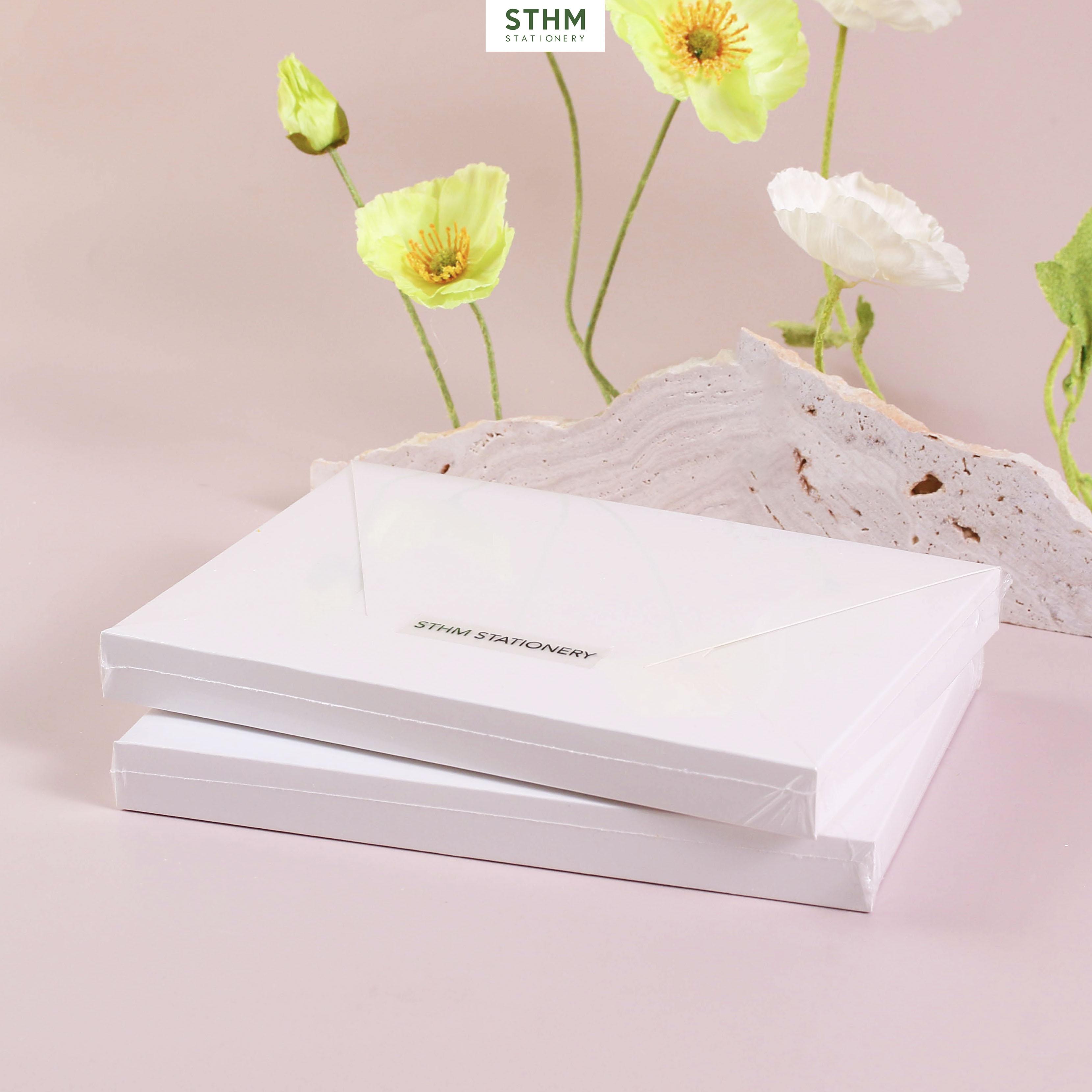 + Mỗi sổ đều được bỏ hộp chỉn chu, hộp được cut out phía trước và được che chắn bởi tấm nhựa mờ giúp bạn nhìn thấy được thiết kế bên trong một cách tinh tế và đẹp mắt. Sổ cũng được seal màng để chống nước.