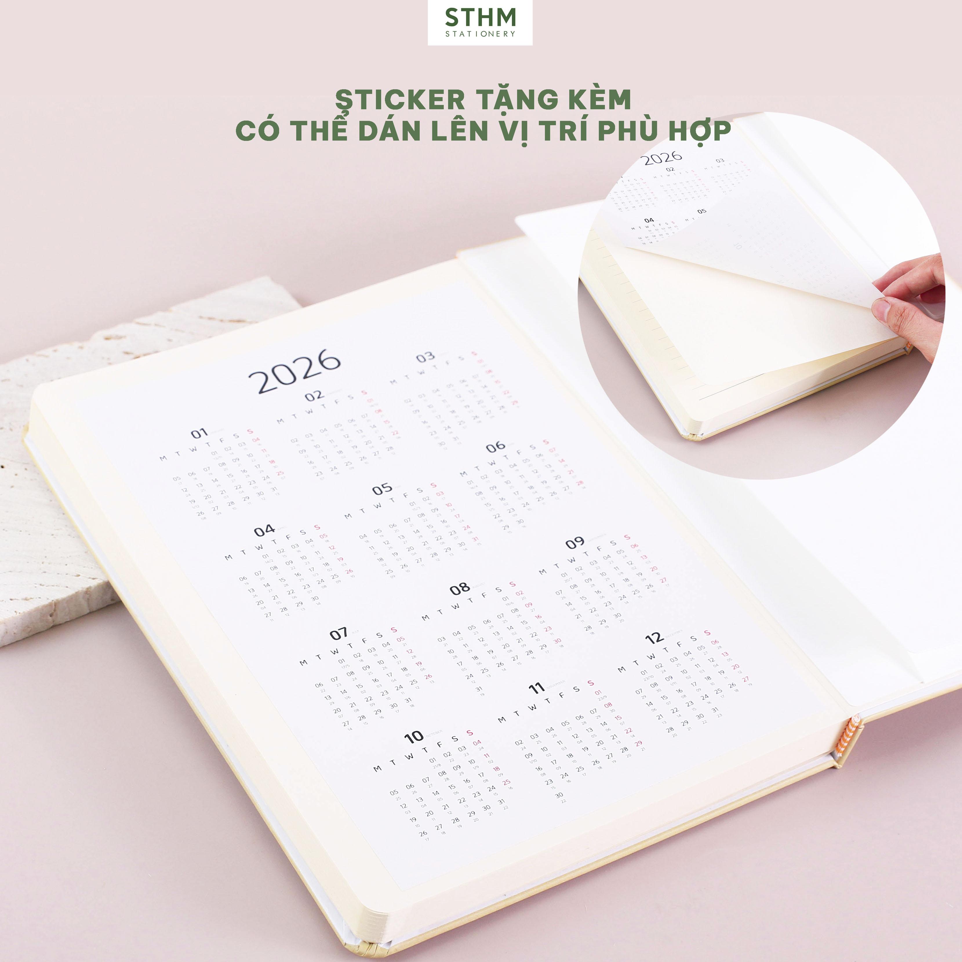 +Sticker lịch âm dương 2 năm liên tiếp để trong túi giấy phía sau, giúp bạn linh hoạt sử dụng và không giới hạn thời gian, bạn có thể tuỳ thích dán ở đâu trong sổ.