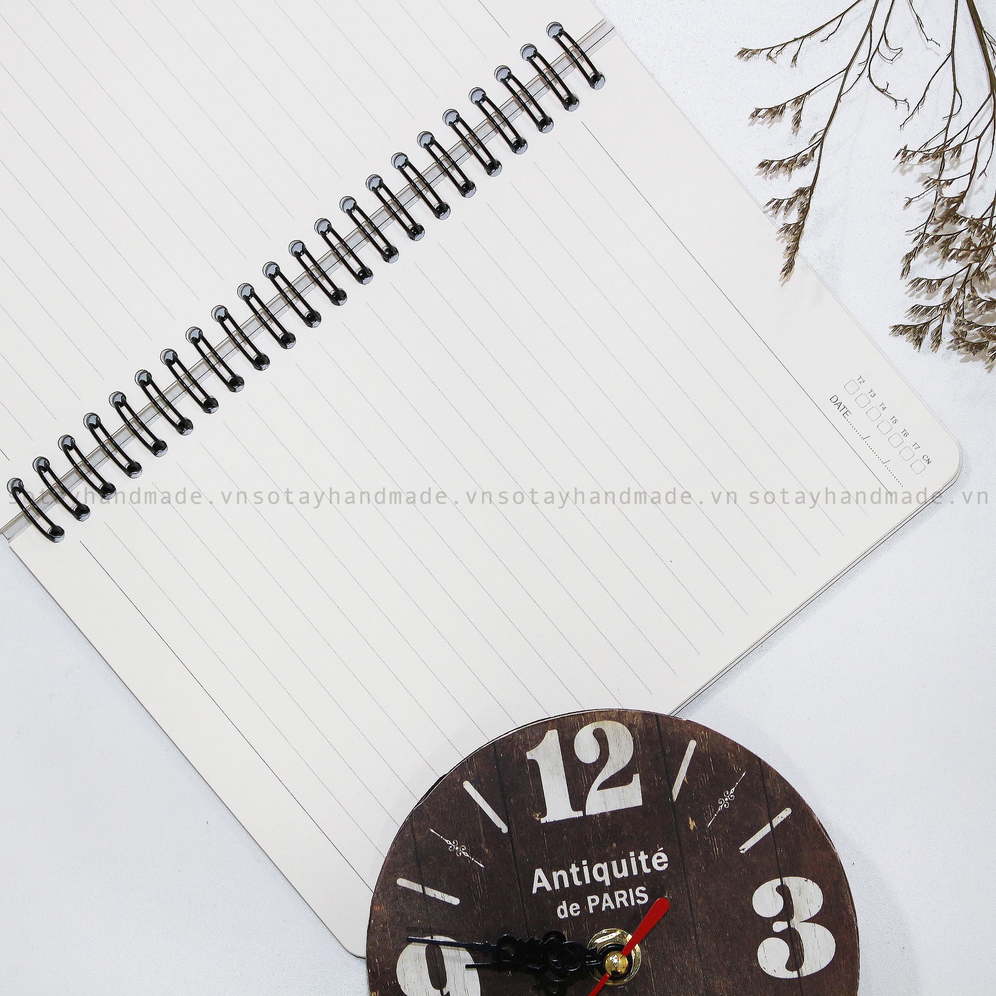 Lưu ý: Không thể tăng số tờ, vì sổ tay gáy lò xo không thể tháo giấy ra vào như sổ bìa còng và kích thước lò xo là cố định, chỉ để vừa với số lượng tờ ruột nhất định là 65 tờ.