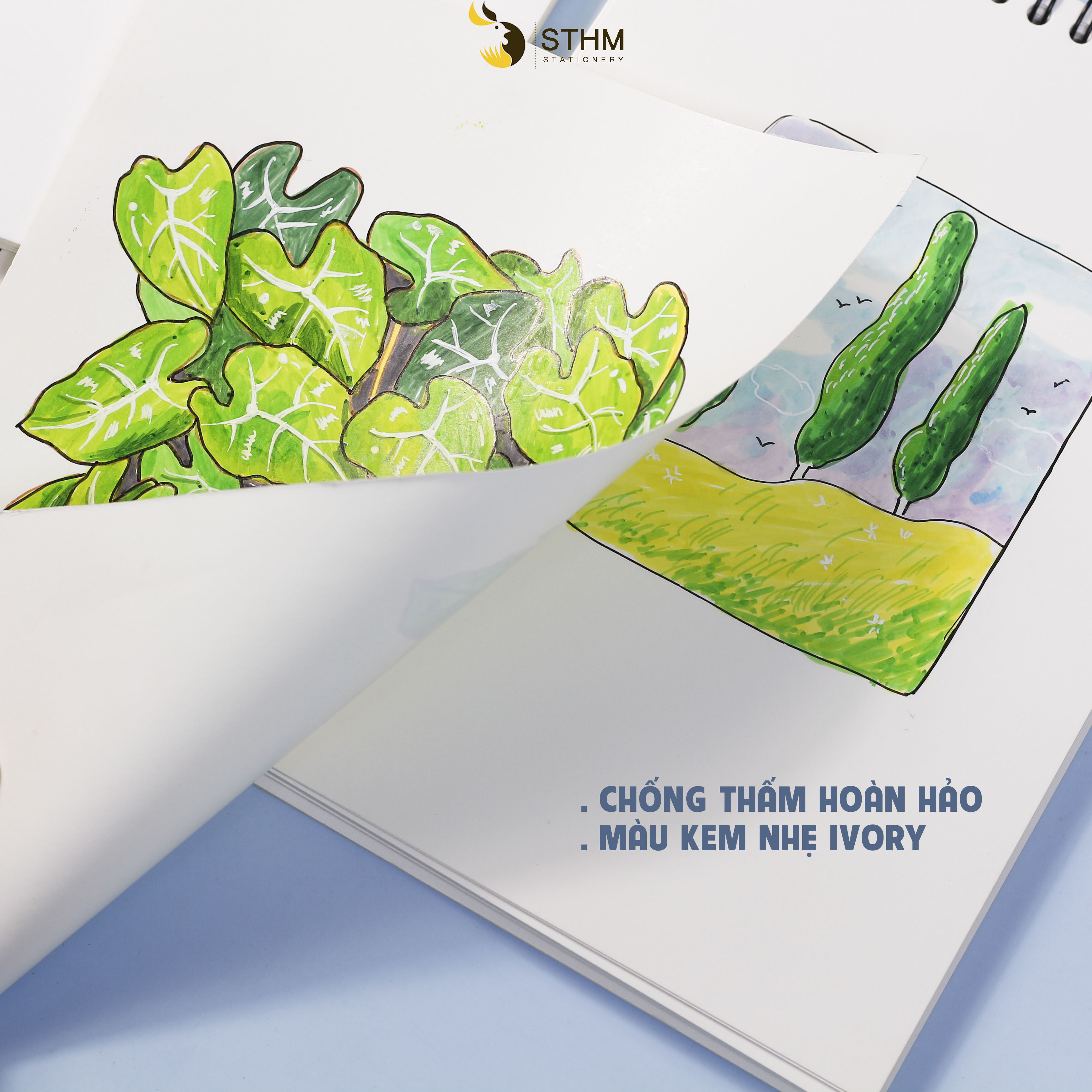 Sổ tay vẽ marker - bút gốc cồn chuyên dụng với chất giấy mỹ thuật cao cấp đạt chứng nhận FSC bảo vệ môi trường và được sản xuất từ gỗ nguyên chất.
